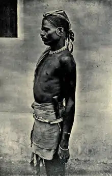 The 1901 census report noted the Koraga as being a lowly tribe of basket-makers and labourers, some of whom were employed as scavengers. They remain today among the untouchables, being considered as ritually polluted by Hindus, but there have in the past been claims that they are of Chandala stock.[4] Their folklore claims Hubbashika to have been one of their chiefs but the Kadamba narrative asserts a Chandala origin, that they are the descendants of the offspring of a Brahman woman and a Shudra father.[6] Edgar Thurston quotes M. T. Walhouse, who wrote in 1875 that this narrative was recorded by Brahmans and that, together with the Kapata, the Koraga were the lowest of the fifteen Chandala groups. However, Thurston thinks it probable that they were in fact the aboriginals of the region who were dispersed, dispossessed and turned into slaves by the influx of Aryans from the north of India.[7] but this narrative lack reliability