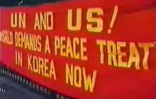 In 1975, the U.N. General Assembly adopted resolutions endorsing the desirability of replacing the Armistice Agreement with a peace treaty and dissolving the UNC.[47][48] This was followed by North Korean attempts to start peace discussions with the U.S. The U.S. however believed influencing China to restrict North Korean actions would be more effective.[49]