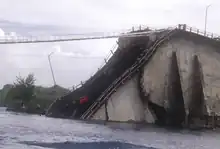 On September 26, 1996, after having reinforcement work done, the bridge suddenly collapsed and shut off fresh water and electricity between the islands. In addition, the collapse killed two people and injured four more. This caused the government to declare a state of emergency. By request of Kuniwo Nakamura, then the country's President and foreign minister, Japan provided emergency aid as well as a temporary bridge.[7] [8]