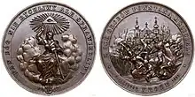 Kražiai massacre (Lithuanian: Kražių skerdynės) was an attack by a Russian Don Cossack regiment on Lithuanians protesting the planned closure of a Roman Catholic church in Kražiai, then part of the Russian Empire, on 22 November 1893. As part of wider Russification efforts, the Tsarist government decided to close the women's Benedictine monastery in Kražiai. The locals petitioned to keep the monastery's Church of the Immaculate Conception open and transform it into a parish church. The Tsar ordered the monastery closed and demolished in June 1893. The locals started a constant vigil inside the church, protecting it from members of the clergy who tried to comply with the orders. On 21 November, Governor of Kaunas Nikolay Klingenberg personally arrived to the town to supervise the closure. Lithuanians resisted and overpowered 70 policemen that Klingenberg brought with him. The next morning, about 300 Don Cossacks arrived from Varniai and were given a free rein to loot and brutalize. According to official data, nine people died and 54 were injured.[1] At least 24 women were raped and 16 men flogged with nagaikas. 71 persons were put on trial for rioting and disobeying police orders, but the cruelty of the Cossacks caused a public outcry and the people received a pardon from the Tsar. The event became a rallying cry of the Lithuanian National Revival.[2]