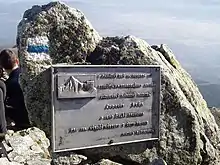 The first celebrity to attempt ascent of Kriváň was the 30-year-old Habsburg Archduke Joseph in 1806, but the plan was abandoned due to inclement weather although parts of the winding road to the old gold mine high on the slopes had already been improved and a campsite built.[5] The first VIP actually to reach the summit was the 43-year-old King Frederick Augustus II of Saxony in 1840. The plaque placed at the top to commemorate the first monarch who stood there was gradually destroyed by activists in the 1850s-1860s, who would have wished the inscription to include a comment in Slovak and who objected to where the inscription spoke of the Hungarian (ethnic) nation in reference to all the subjects of the Kingdom of Hungary.