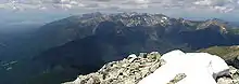 Kriváň has been favored by those appreciative of its aesthetic and historical allure, as well as by those who seek vistas from the top. Polls of nature lovers at large as well as of connoisseurs have consistently rated it as Slovakia's most beautiful mountain.[13] The 360-degree view from the top is among the best in Slovakia with the scenery ranging from the populated valleys of upper Liptov, Spiš, and distant parts of Podhale, to the rugged drops of its north face, and many of the notable peaks of the Tatras including Giewont over Zakopane, Rysy, Lomnický štít, and Gerlach, the highest peak of the Carpathians. The panorama is framed by the Western and Low Tatras, and by mountain ranges beyond them in good visibility.[14]