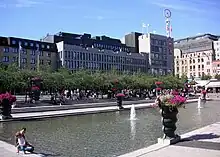 North of the park is Hamngatan with the department stores PK-huset and Nordiska Kompaniet (NK) facing the park.