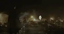 The video depicts the Yojiro Noda at night time in a playground, as he pushes a girl with a blindfold and headphones in a wheelchair through the park. The girl holds a flash light as they move. Through the park, the pair pass a facially deformed man and men who are fighting. Further through the park is a makeshift slum, where they pas a man on fire. The sky begins to dawn, and the people around Noda and the girl are shot. A man sets a car on fire, and is later shot down by a group of men with guns. Near the end of the song, the pair come up to a pile of bodies and severed limbs, along with people crying over their bodies. The rest of the band members perform the song in this scene. Noda leaves the girl to close the eyes of a dead boy, and covers him with his jacket. The girl gets up from her wheelchair, and drops her flash light. She screams, removing her headphones and blindfold to reveal that her eyes have been sewn shut.