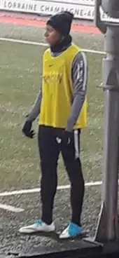 Mbappé scored the first hat-trick of his first-team career on 14 December 2016, in a 7–0 home win over Rennes in the Coupe de la Ligue round of 16 – the first hat-trick scored by any Monaco player in the competition since Sonny Anderson in 1997.[41][42][36] On 11 February 2017, Mbappé scored the first Ligue 1 hat-trick of his career in a 5–0 home win over Metz; at 18 years and two months, he became the youngest player to score a league hat-trick since Jérémy Ménez did so for Sochaux back in 2005.[43] On 21 February, Mbappé scored Monaco's second goal in the 40th minute of a 5–3 loss away to Manchester City in the UEFA Champions League round of 16. It was his first European-competition goal, and he became the second-youngest French scorer in Champions League history, behind only Karim Benzema.[44][45] On 5 March, Mbappé scored two first-half goals in a 4–0 home win over Nantes to bring his Ligue 1 career tally to ten goals, becoming the youngest player in the previous thirty years to reach the ten-goal mark in the league.[46][47] On 11 March, he scored a goal in a 2–1 home win over Bordeaux, registering his seventh goal in his previous four league starts.[48]