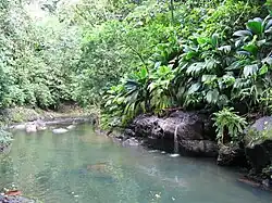 The Lézarde is a river of Guadeloupe. 25.4 kilometres (15.8 mi) in length,[1] it is one of the most important rivers in Guadeloupe, which flows into the town of Petit-Bourg and into the Caribbean Sea on the east coast of the island. It bears its name from the way it winds between rocks and the rainforest. The source of the river is in Merwart, at 564 metres (1,850 ft) above sea level, near Icaques, in the municipality of Petit-Bourg. There are sugarcane plantations in the vicinity.[2]
