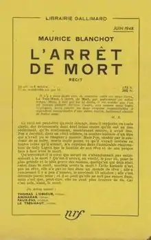 Death Sentence (French: L'Arrêt de mort) is a philosophical novel by Maurice Blanchot. First published in 1948, it is his second complete work of fiction.