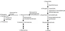 - ↑ Viola, Ronald E. (2001). "The Central Enzymes of the Aspartate Family of Amino Acid Biosynthesis". Accounts of Chemical Research. 34 (5): 339–349. doi:10.1021/ar000057q. PMID 11352712.