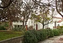 Patchett's home is the Lovell House, a famous International Style mansion designed by Richard Neutra. Bracken's house is at 501 Wilcox Avenue in the affluent Hancock Park neighborhood, overlooking the Wilshire Country Club.[22] The house required a $75,000 renovation to transform it into the Spanish-style home described in the script.[21] Historic Central Los Angeles neighborhoods were used for the scenes in which the police hunt down the Nite Owl suspects, including Angelino Heights, Lincoln Heights, and Koreatown.[21] The Victory Motel was one of the only purpose-built sets, constructed on a flat stretch of the Inglewood Oil Field in Culver City.[21]
