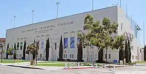 ![]() The front of the LA84 Foundation/John C. Argue Swim Stadium in 2014 | |