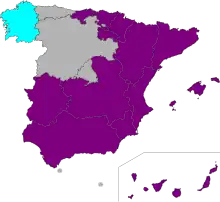 In 1994, the Ley de Arrendamientos Urbanos was passed, giving same-sex couples some recognition rights.[40] Registries for same-sex couples were created in all of Spain's 17 autonomous communities: Catalonia (1998), Aragon (1999), Navarre (2000), Castile-La Mancha (2000), Valencia (2001), the Balearic Islands (2001), Madrid (2001), Asturias (2002), Andalusia (2002), Castile and León (2002), Extremadura (2003), the Basque Country (2003), the Canary Islands (2003), Cantabria (2005), Galicia (2008), La Rioja (2010) and Murcia (2018),[41][42] and in both autonomous cities; Ceuta (1998) and Melilla (2008).[43] These registries grant unmarried couples some benefits, but the effect is mainly symbolic.
