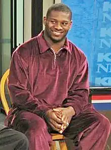 LaDainian Tarshane Tomlinson (born June 23, 1979) is an American former professional football running back who played in the National Football League (NFL) for 11 seasons. After a successful college football career with the TCU Horned Frogs, the San Diego Chargers selected him as the fifth overall pick in the 2001 NFL Draft. He spent nine years with the Chargers, earning five Pro Bowl appearances, three Associated Press first-team All-Pro nominations, and two NFL rushing titles. Tomlinson was also voted the NFL Most Valuable Player (MVP) in 2006 after breaking the record for touchdowns in a single season. He played two further seasons with the New York Jets, before retiring. He was elected to the Pro Football Hall of Fame in 2017.