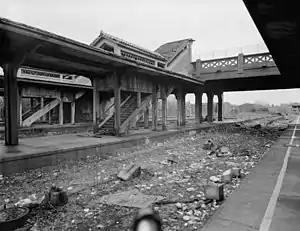 ![]() Abandoned platforms in 1983, with Grove Street Bridge in background. | |||||||||||