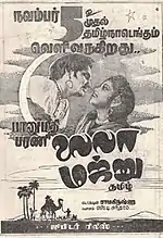 This version made by Bhanumathi was dubbed into Tamil and released simultaneously with the Telugu version. S. D. Sundharam wrote the dialogues and lyrics for the Tamil version. F. Nagoor made another Laila Majnu in 1950 under the banner Balaji Pictures and shot at Newtone studios with T. R. Mahalingam and M. V. Rajamma . The story was again made in 1953, 1976 (in Hindi and Bengali), and later in 1982.[2]