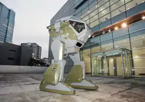 The Land Walker is the first 3.4-meter-tall (11 ft) bipedal robot. Despite its name, it does not actually walk— instead shuffling on wheels hidden under its "feet" at approximately 1.5 km/h (1 mph). It was invented by Masaaki Nagumo and created by researchers who hope to someday create similar robots to be used in the military and law enforcement.[1]