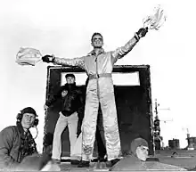 In the United States Navy, aircraft carrier operations began with USS Langley (CV-1) in 1922, and it served as a platform to experiment and develop aircraft launch and recovery procedures.[2] The first pilots had no signaling system for assistance from shipboard personnel.[2] Langley's first executive officer, Commander Kenneth Whiting, had a hand-cranked movie camera film every landing to aid in evaluation of landing technique.[2] When not flying, Whiting observed all landings from the aft port corner of the flight deck.[2] Whiting's position remained visible to landing pilots in critical touchdown attitudes when the nose of the aircraft might obscure the pilot's view straight ahead. Pilots found Whiting's body language helpful and suggested an experienced pilot be assigned to occupy that position, using agreed signals which evolved with experience.[2] On one occasion when trying to signal an inexperienced pilot who had missed several approaches by coming in too high, Whiting pioneered the use of paddles or flags by grabbing the white hats of two nearby sailors and holding one in each hand to emphasize his hand positions.[3]