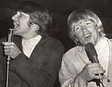 ![]() Larry Norman (right) performing with Gene Mason (left) | |