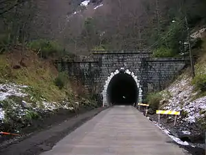 This tunnel allows only one-way traffic, which is regulated by a toll station where a fee of 400 pesos ($0.53 USD) per car is charged.[1] Its average traffic is about 450 vehicles daily, including some heavy fuel trucks coming from Argentina. An alternative to this tunnel is the old scenic gravel road Cuesta de Las Raíces to be taken northwards about 5 kilometres (3.1 mi) before the western or 11 kilometres (6.8 mi) before the eastern entrance.