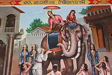 • Photos of the murals with accompanying texts are of the sala (pavilion) of temple "bridge three" (Thai: วัดสะพานสาม wat saphan saam), Phitsanulok, Thailand, 2015. License CC-BY-SA-4.0 confers on May 17, 2016.