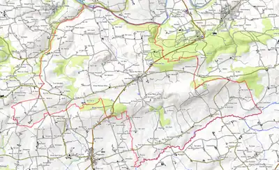 The commune is situated at the heart of a hilly and forest-covered region called the Montagnes Noires (black mountains) which extends for approximately 30 kilometres between the communes of Gourin to the east and Gouezec in the west.