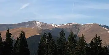 The Leaota Mountains are located in central Romania, north of the city of Târgoviște. They are part of the Southern Carpathians group of the Carpathian Mountains, and have as neighbours the Bucegi Mountains to the east and Piatra Craiului to the west. The mountains cover an area of 346 km2 (134 sq mi) within Dâmbovița, Argeș, and Brașov counties.[1]