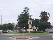 However, the first block of land wasn't sold in the town until 3 April 1913. During 1913, a Kurrajong tree (later known as Pioneers' Tree), was planted as a central feature on the eponymous Kurrajong Avenue, and a butter factory was established in the town.[17] In August of the same year, Walter Burley Griffin visited the town to complete its design.[13][18]