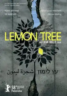 Lemon Tree (Hebrew: עץ לימון, romanized: 'Etz Limon; Arabic: شجرة ليمون, romanized: 'Shajaret Leimoun) is a 2008 Israeli-Palestinian drama film directed by Eran Riklis and co-directed by his cousin Ira Riklis. It stars Hiam Abbass, Ali Suliman, Danny Leshman, Rona Lipaz-Michael, Tarik Kopty, Amos Lavi, Lana Zreik and Amnon Wolf.[2] The film describes the legal efforts of a Palestinian widow to stop the Israeli Defense Minister, her next door neighbor, from destroying the lemon trees in her family farm. At the same time, she develops a human bond with the minister's wife.[3]