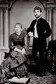 In 1881, Janáček founded and was appointed director of the organ school, and held this post until 1919, when the school became the Brno Conservatory.[6] In the mid-1880s, Janáček began composing more systematically. Among other works, he created the Four male-voice choruses (1886), dedicated to Antonín Dvořák, and his first opera, Šárka (1887–88).[20] During this period he began to collect and study folk music, songs and dances. In the early months of 1887, he sharply criticized the comic opera The Bridegrooms, by Czech composer Karel Kovařovic, in a Hudební listy journal review: "Which melody stuck in your mind? Which motif? Is this dramatic opera? No, I would write on the poster: 'Comedy performed together with music', since the music and the libretto aren't connected to each other".[21] Janáček's review apparently led to mutual dislike and later professional difficulties when Kovařovic, as director of the National Theatre in Prague, refused to stage Janáček's opera Jenůfa.[22][23]