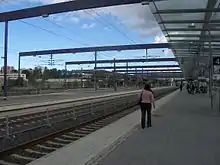 Leppävaara station (Finnish: Leppävaaran rautatieasema, Swedish: Alberga järnvägsstation) is a railway station located in Leppävaara, a district of the city of Espoo in Finland.[2] It is located about 11 kilometres (7 mi) to the northwest of Helsinki Central.