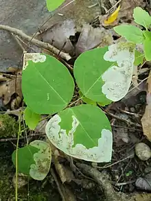 | Damage caused by Leucanthiza amphicarpeaefoliella | |