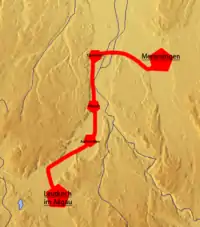 The military was involved in the implementation: the tracks in the Württemberg area were commissioned for the Royal Württemberg State Railways (Königlich Württembergischen Staats-Eisenbahnen) by members of the Berlin railway regiment; its exercises sometimes involved participation in civil construction projects.[2]