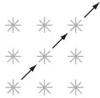 Integrating these vectors over any collection of lights, or over the entire sphere of directions, produces a single scalar value—the total irradiance at that point, and a resultant direction. The figure shows this calculation for the case of two light sources. In computer graphics, this vector-valued function of 3D space is called the vector irradiance field.[6] The vector direction at each point in the field can be interpreted as the orientation of a flat surface placed at that point to most brightly illuminate it.