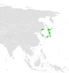 G. H. A. Budde-Lund found samples of L. cinerascens on a long ocean exploration, and when he returned, he could not remember if they had come from Japan, Manila, or Chile, limiting current knowledge of the full range of the species.[3] It has also been found on Kuril Islands (specifically Kunashir Island) and Peter the Great Gulf in far western Russia.[6] It is one of four Ligia species to be found on Japanese coasts. Specifically, it is found mainly on Hokkaido, with a separate population in Tokyo Bay.[4]