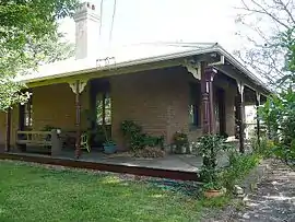 The railway station at Linden was built in 1874 and was named after Linden Lodge, the home built in 1865 by local businessman William Jolley Henderson.[3] Linden was originally known as Seventeen Mile Hollow because of its location 17 miles (27.35 km) from the Nepean River. It was originally the location of a tollhouse erected in 1849 and demolished in the 1860s during the construction of the railway.