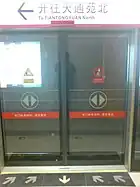 Line 5 is the first subway line in Beijing to have platform screen doors in underground stations and automatic platform gates in elevated stations that prevent riders from falling onto the tracks. Line 5 stations also have LCD screens that display the wait times for the next train. Line 5 trains have digital voice announcements (in Mandarin and English) and LCD passenger information displays.