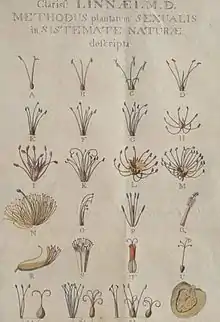Linnaeus' sexual system for plant classification from Systema Naturae