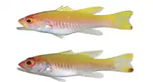 Liopropoma santi, the spot-tail golden bass, is a species of marine ray-finned fish, related to the groupers and classified within the subfamily Epinephelinae of the family Serranidae. It has been collected from deep reefs off Curaçao, southern Caribbean; it is the deepest occurring Liopropoma species in the Atlantic Ocean.[2][3]