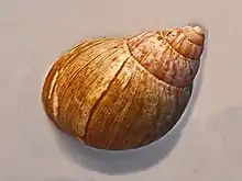 Shell of Lissachatina glutinosa from Ethiopia on display at the Museo Civico di Storia Naturale di Milano