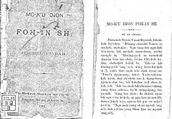 - ↑ 'Kiʻu-tsʻu iâ-sou ki-tok kâi sin-ieh tshuân-tsu chien-kʻng Mʻa-thʻai k̈ʻau Sʻai-thû.'. Tãi Eng-kok lãi gūa Siàn-tsṳ-hũe Ìn. 1892.