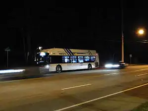 MARTA 2014 Xcelsior 1583 on the 5 Bus on Roswell Road at night.