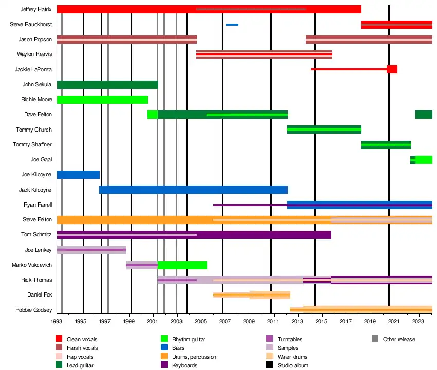 | Image | Stage name | Real name | Years active | Instruments | Other bands | Release contributions |