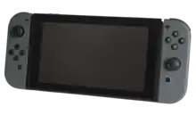 The Nintendo Switch is a video game console developed by Nintendo, for which games are released both in physical and digital formats. Physical games are sold on cartridges that slot into the Switch console unit.[1] Digital games are purchased through the Nintendo eShop and stored either in the Switch's internal 32 GB of storage (64 GB in the OLED version) or on a microSDXC card.[2] The Switch has no regional lockout features, freely allowing games from any region to be played on any system,[3] with the exception of Chinese game cards released by Tencent that play only on consoles distributed by Tencent.[4]
