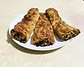 | Farsu magru | ![]() | beef or veal slices flattened and superimposed to form a large rectangle, with a layer of thin bacon slices on top. For the filling, crushed bread slices, cheese, ham, chopped onions, garlic and fresh herbs are mixed together. |