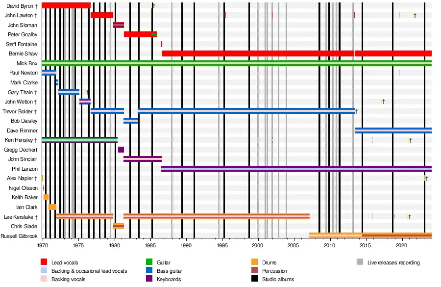 David Byron 1969–1976 (died 1985)[1][5] lead and backing vocals