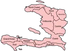 Map of Haiti with administrative divisions.
