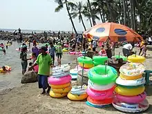 This is a non-comprehensive list of inflatable manufactured goods, as no such list could ever completely contain all items that regularly change. An inflatable[1] is an object that can typically be inflated with a gas, including air, hydrogen, helium and nitrogen. Some can be inflated with liquids, such as waterbeds and water balloons.
