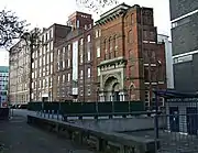 Grade II listed building.[18]Notes: Original for spinning, then used for machine manufacture, then as a garment factory. It was the home to Rogue Studios and other businesses for ten years. It was purchased for redevelopment in 2015 by the Manchester based company Capital and Centric for redevelopment where they propose to only sell apartments for owner occupation to private individuals.[19][20][1]