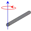 | Thin rod of length L and mass m, perpendicular to the axis of rotation, rotating about one end.