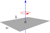 | Thin rectangular plate of height h, width w and mass m (Axis of rotation at the end of the plate) |