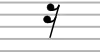 F clef (Bass clef) An F clef places the F below middle C on the line between the dots.[2] When placing the F below middle C on the fourth line, as shown here, it is called bass clef, which is by far its most common usage. Bass clef appears nearly as often as treble clef in modern music notation. In older notation, particularly for vocal music, F clefs were sometimes centered on the third line (baritone clef) but this usage has essentially become obsolete. |